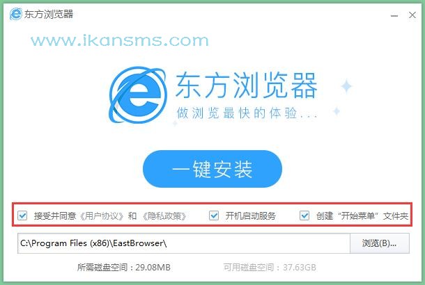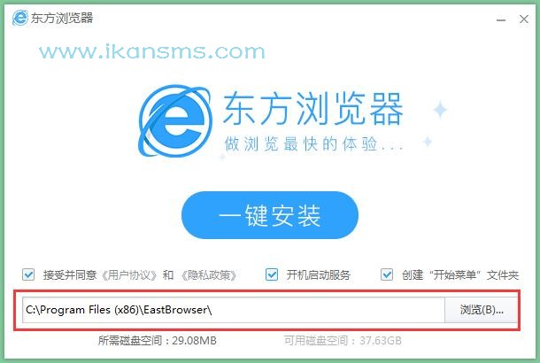 2.选择安装位置,默认的是C:\Program Files (x86)\EastBrowser\,知识兔可以知识兔点击【浏览】修改