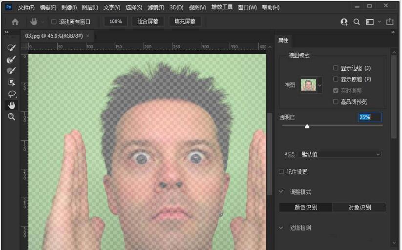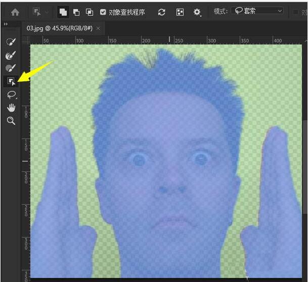 3、从左侧工具栏中选择对象选择工具,然后知识兔将鼠标指针指向图像中的人像面部,此时人像范围就会自动显示半透明的蓝色,如图所示。