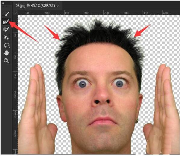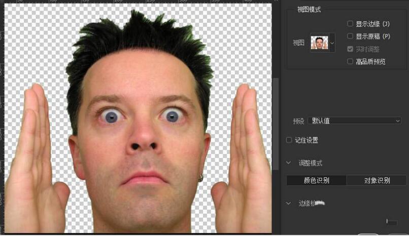 5、对于人像边缘显示的不协调颜色,知识兔可以使用调整边缘工具涂抹,直至头发扁你元自然为止,如图所示。