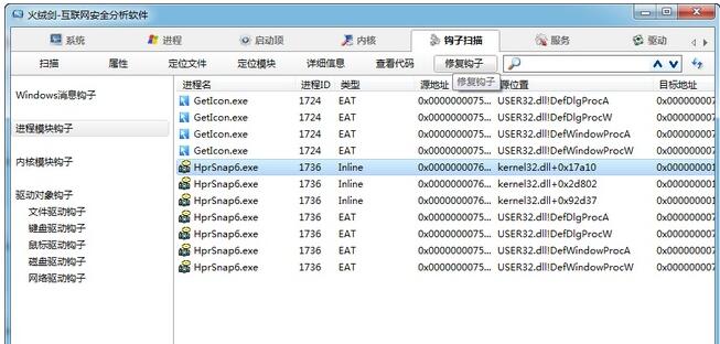 火绒剑怎么查钩子修复