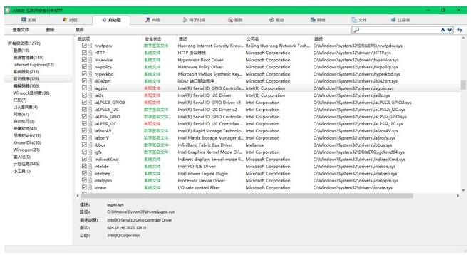 火绒剑独立版能够查看当前系统正运行的内核文件,显示其安全状态及地址、路径等信息。扫描WINDOWS消息钩子,进程模式钩子及驱动对象钩子。查看系统中所有运行中的服务,正使用的驱动文件名称和路径。运行中的网络进程和进程ID,进程模式及所使用的协议,本地地址和端口。