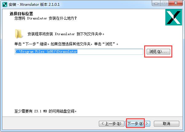 3.选择安装位置,默认的是【C:\Program Files (x86)\Xtranslator】,单击【浏览】修改