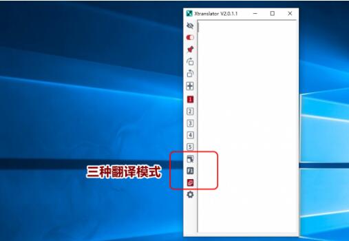 下图框选处即为三个翻译模式按钮。红色代表选中状态。软件默认是”知识兔双击鼠标右键翻译模式”,也就是说选中一段话,知识兔双击鼠标右键就会出现翻译。是最推荐的。