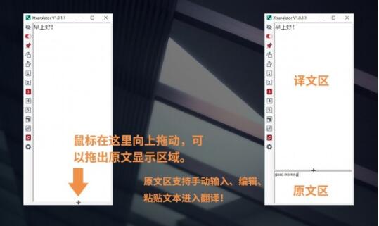 您可以拖出原文区域。原文区域可修改、输入、粘贴入,然后知识兔自动更新翻译。