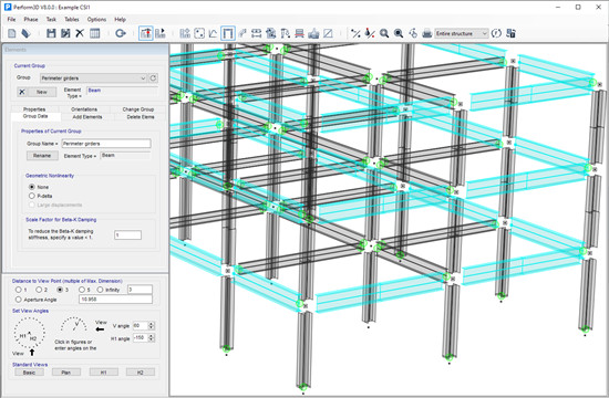 在Perform3D中,框架视图可用于通过仅显示结构的选定部分来简化和组织结构的显示和定义。您可以在定义模型时在完整结构视图和仅显示框架视图中的元素的视图之间快速切换。