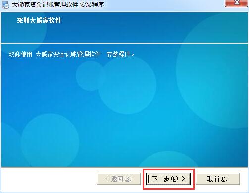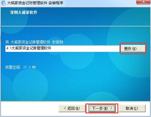 2.选择软件的安装目的地,默认的是【d:\大熊家资金记账管理软件】,单击【浏览】修改到其他文件夹,单击【下一步】开始安装