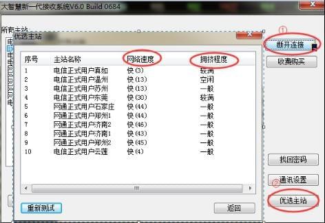 答:知识兔点击终端-接收系统-断开连接-优选主站-查看网络速度数值:越小越好(0-50为优、大于100网络则不稳定、未知则表示网络并未连接到软件的服务器)并选择拥挤程度空闲或一般的服务器登陆;如未解决,知识兔建议关闭杀毒软件和防火墙,或是重启moden和路由器尝试。