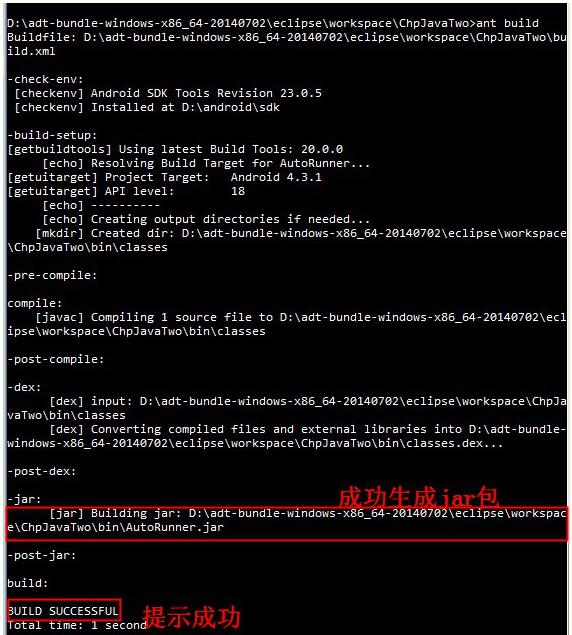 cmd进入项目的工程目录,然后知识兔运行ant build,知识兔使用ant编译生成jar,执行如下: