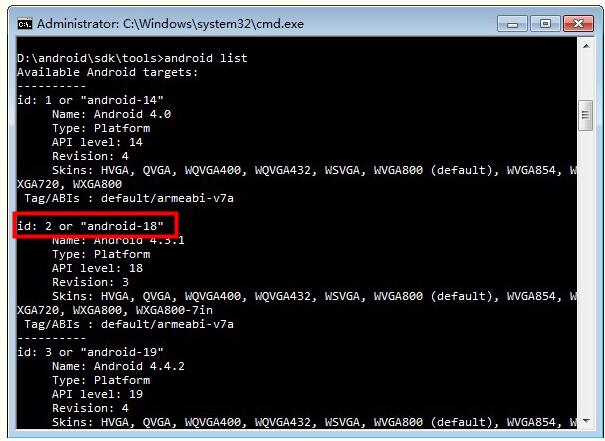 cmd进入sdk\tools\ 目录下,运行命令:android list