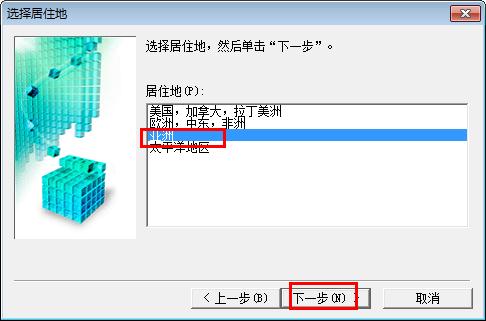 4.选择居住地,默认【亚洲】,单击【下一步】