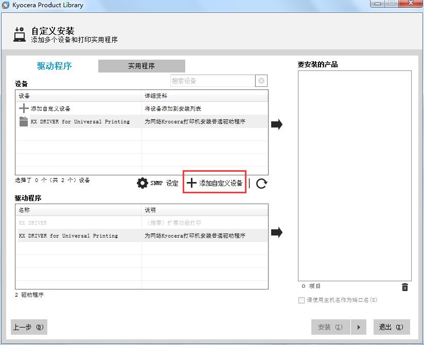 4.进入自定义安装界面,单击【添加自定义设备】