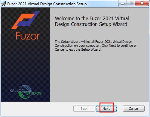 2.解压Fuzor-2021-Construction-VDC-Installer.zip文件,知识兔双击Fuzor-2021-Construction-VDC-Installer.msi文件,进入Fuzor2021安装向导界面,单击【next】
