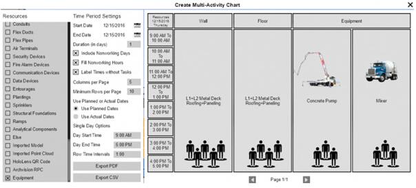 通过多活动图表,快速查看工人和机械的空闲时间,知识兔以便于合理安排施工任务