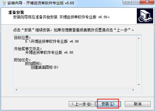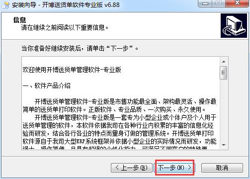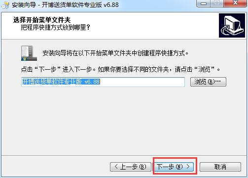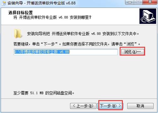 3.选择软件的安装目的地,默认的是【D:\开博送货单软件专业版 v6.88】,单击【浏览】自定义