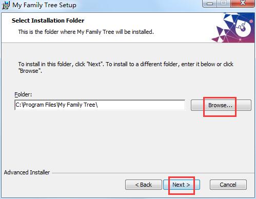 3.选择软件的安装文件夹,默认的是【C:\Program Files\My Family Tree\】,如需修改单击【browse】自定义,然后知识兔单击【next】