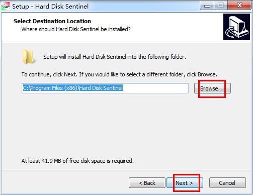 4.选择软件的安装文件夹,默认的是【C:\Program Files (x86)\Hard Disk Sentinel】,知识兔选择其它文件夹单击【browse】修改
