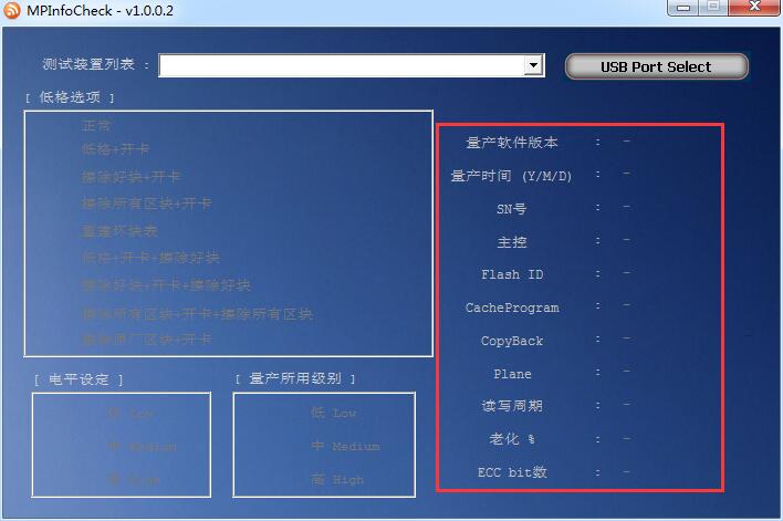 MPInfoCheck是一款专用的联盛U盘检测软件,标准的检测机制,能够快速的检测出U盘的量产软件版本、量产时间、SN号、主控、plane、读写周期、老化百分比等参数,同时还可对低格、电平和量产所用级别进行检测,了解U盘的详细信息,非常的专业,推荐有需要的朋友下载!