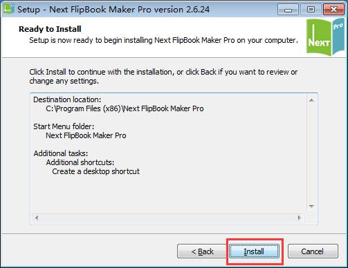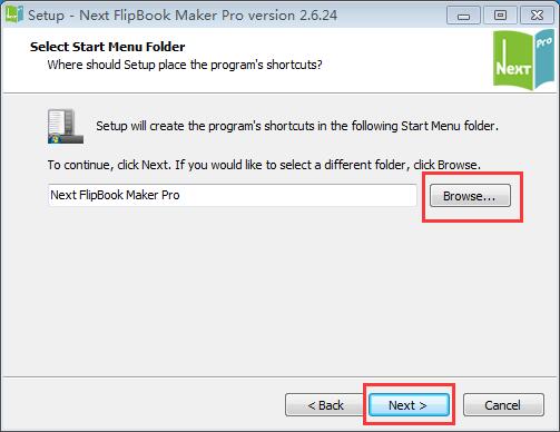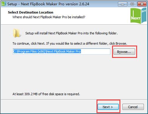 1.首先安装主程序,知识兔双击nextflipflipbookmakerpro.exe文件,出现软件的安装位置,默认的是【C:\Program Files (x86)\Next FlipBook Maker Pro】,单击【browse】自定义