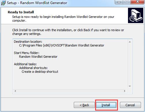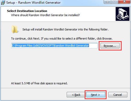 2.选择软件的安装目的地,默认的是【C:\Program Files (x86)\VOVSOFT\Random Wordlist Generator】,单击【browse】修改