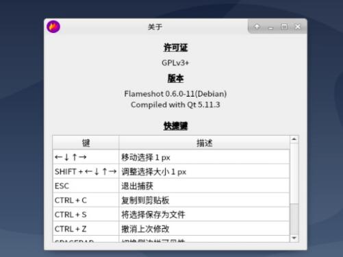 Frameshot 支持快捷键。在 Flameshot 的托盘图标上右击并知识兔点击 “信息” 窗口便可以看到在 GUI 模式下所有可用的快捷键。下面是在 GUI 模式下可用的快捷键清单。