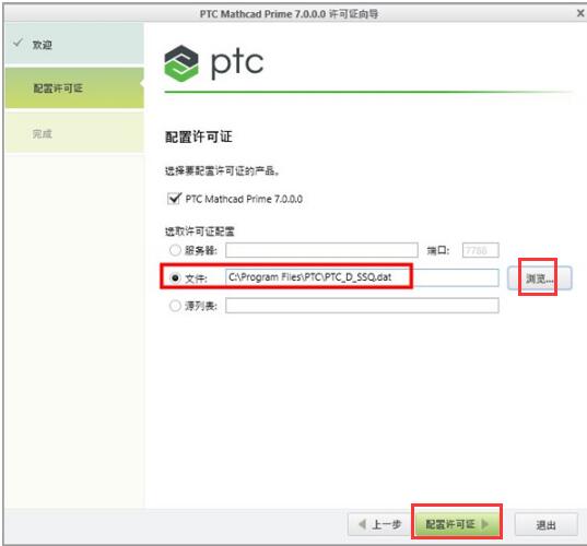 7.选择要配置许可证的产品和许可证配置文件,知识兔加载C:\Program Files\PTC\PTC_D_SSQ.dat即可