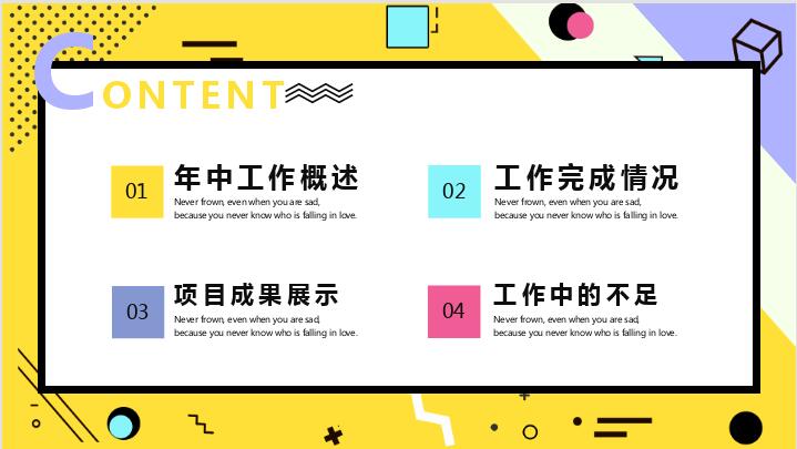 孟菲斯工作总结PPT模板免费下载-孟菲斯风格年中工作总结PPT模板下载