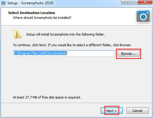 2.选择软件的安装位置,默认的是【C:\Program Files (x86)\Screenphoto】,单击【browse】自定义