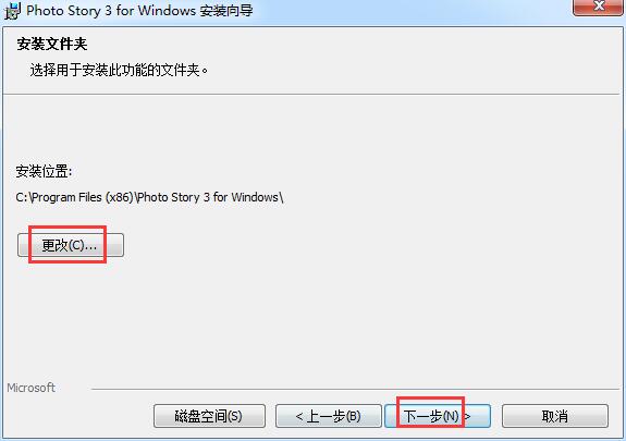 3.选择安装文件夹,默认的是【C:\Program Files (x86)\Photo Story 3 for Windows\】,单击【更改】自定义