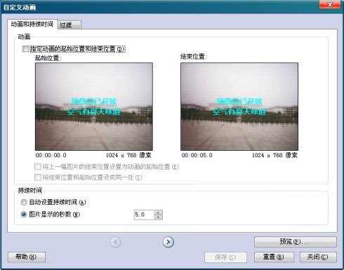 上图就是设置图片显示时间及图片开始与结尾画面大小的调节。