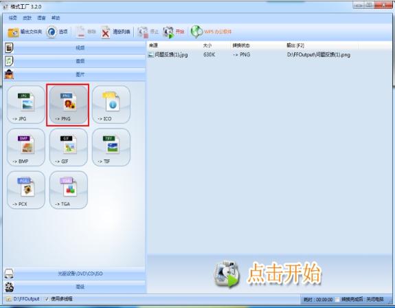 1.第一步:选择你想要转换成的格式。以要转换成”PNG”格式为例,知识兔打开软件后,知识兔点击”PNG”: