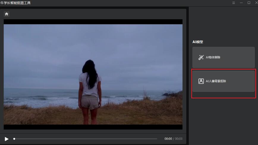 步骤三:选择【AI模型】,知识兔包括AI物体移除和AI人像背景抠除两种选项,知识兔选择【AI人像背景抠除】