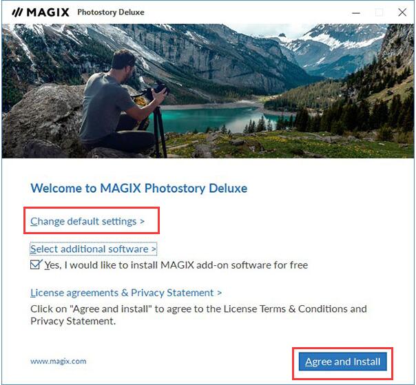 3.解压完成,进入Photostory Delux 2021安装界面,知识兔可以单击【change defult settings】更改路径,知识兔建议保持默认,单击【Agree and Install】