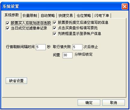 可以随心的改变您交易系统的设置,在您所需要的栏目前打上勾和修改您所需要修改的参数。