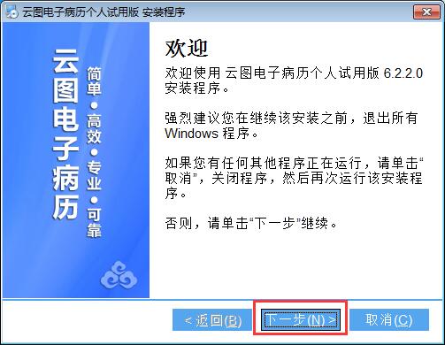 1.运行安装文件,进入云图电子病历系统安装界面,单击【下一步】