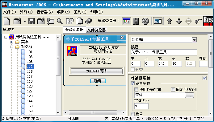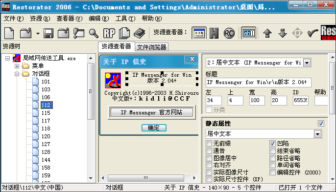 4、然后知识兔在”资源树”里找到”对话框”鈥斺€?112″这一项。知识兔只需单击知识兔想改的文字,在右侧”标题”下方修改即可!