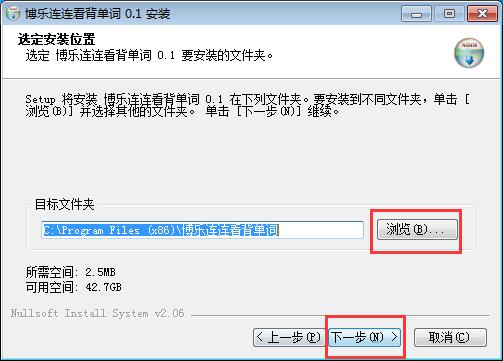 4.选择安装位置,默认的是【C:\Program Files (x86)\博乐连连看背单词】,知识兔选择其他文件夹单击【浏览】