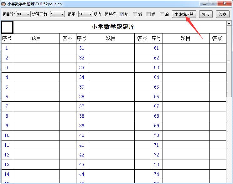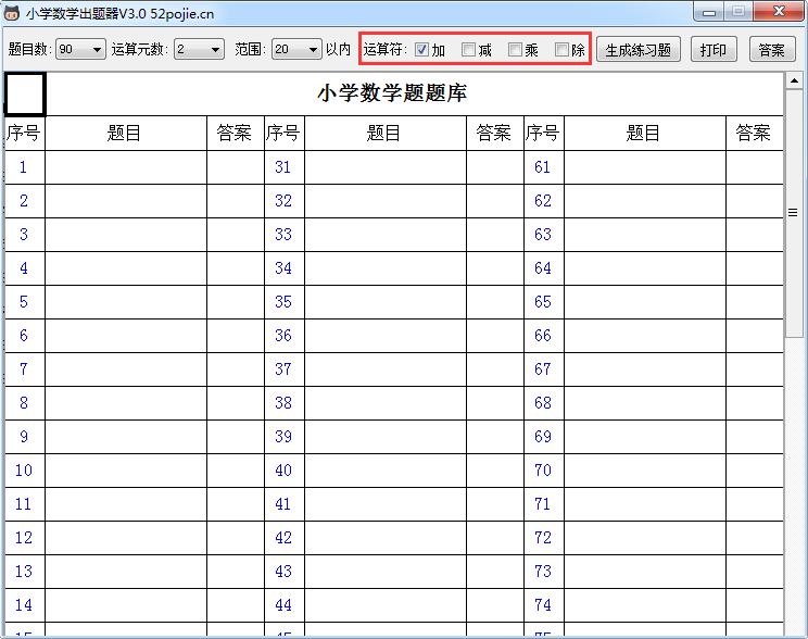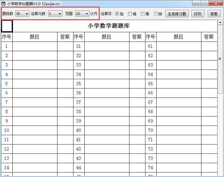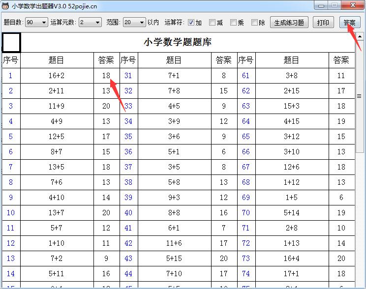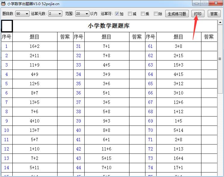5.生成的题目可以单击【打印】按钮一键打印出来