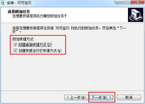 3.选择附加任务,在需要添加的附加快捷方式前面打勾