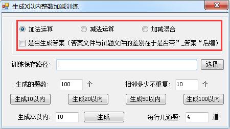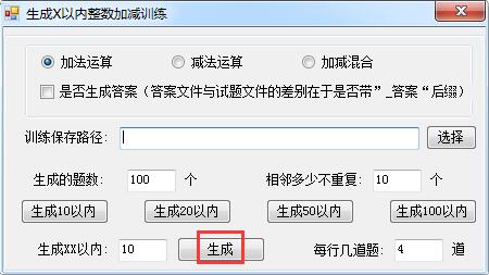 4.设置生成的题数、相邻多少不重复和生成多少以内的题目