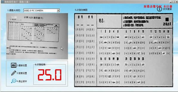 教师阅卷助手是为广大老师设计的一款阅卷软件,连接摄像头之后就可以开始阅卷了,采用先进的识别技术,识别速度快,准确率高,用户设置模板和答案之后就可以开始读卡了,并且知识兔直接显示分数。