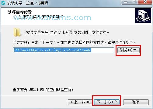 3.选择安装位置,默认的是【C:\Users\Administrator\AppData\Local\landi】,知识兔点击【浏览】修改