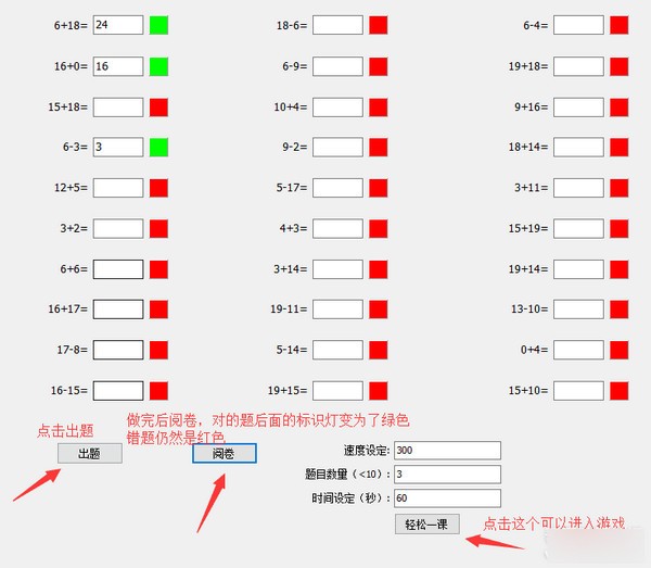 小学整数加减乘除练习工具是为小学阶段的学生设计的一款数学运算练习软件,家长可根据孩子的情况出题,知识兔设置出题数值和出题范围,可只出加减和加减乘除,出题之后设定时间孩子就可以在线做题了,正确与否以红绿的形式体现出来,一目了然,和游戏一般,增加孩子练习的趣味性,家长也省心,需要的朋友可以下载!