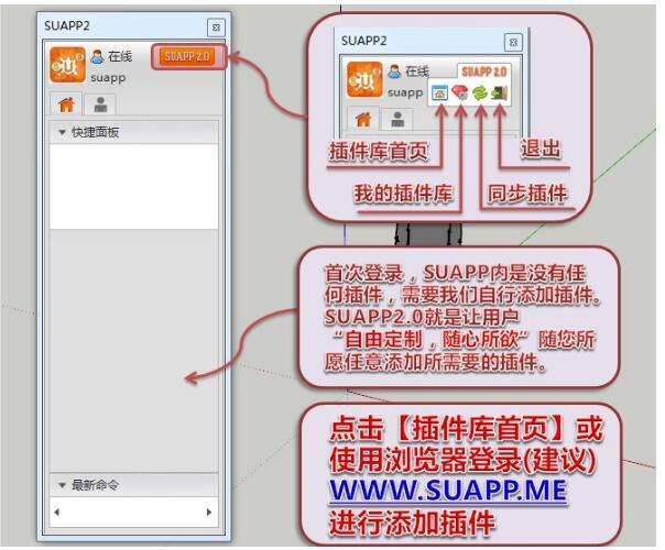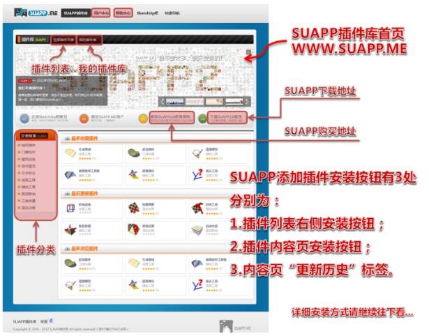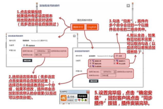 3、SUAPP添加插件安装按钮有3处,分别为: