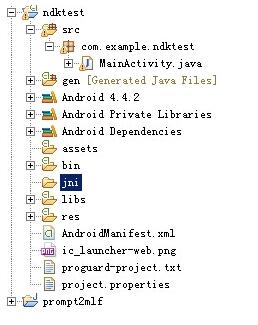 新建一个Android项目ndktest,并在工程下新建jni文件夹。