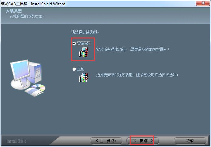2.选择安装类型,默认的是完全安装,也可选择定制自定义安装