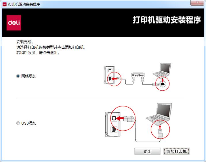 7.如果知识兔没有添加打印机的,添加一下打印机,稍后添加的选择【退出】,驱动安装完成