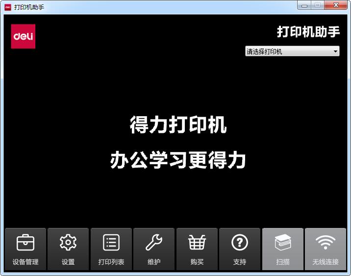 8.安装完成,知识兔打开得力打印机助手可以进行设备管理、设置、维护和打印列表查看等操作。