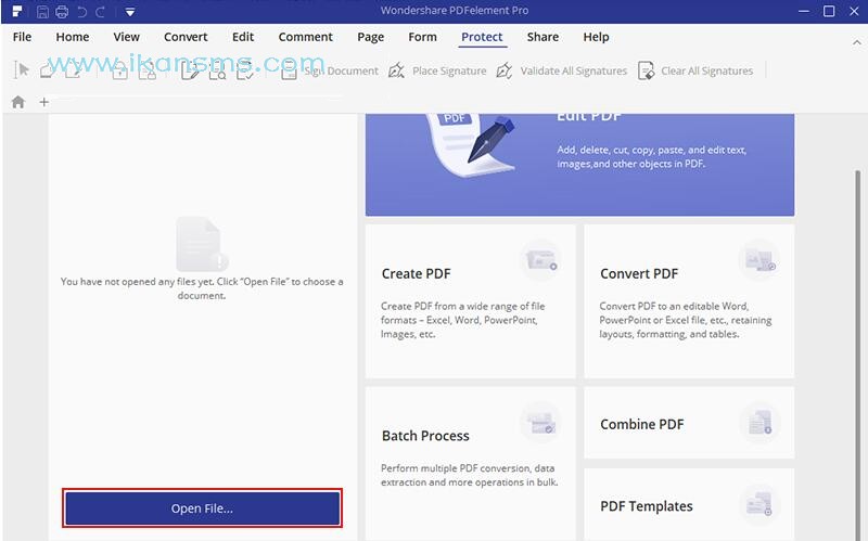 单击PDFelement主程序窗口中的”打开文件”按钮,知识兔打开PDF文档。