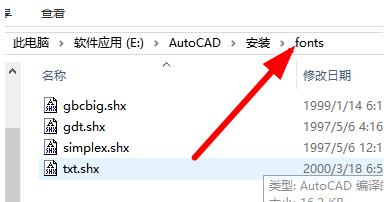 3、知识兔将tssdeng.shx字体直接复制到AutoCAD安装目录的fonts字体目录下