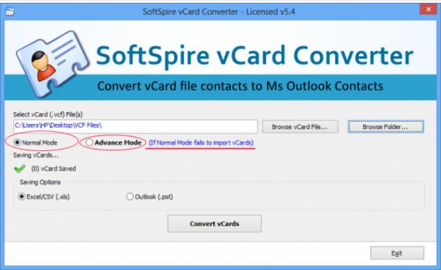 SoftSpire vCard Converter是一款专业的格式转换工具。知识兔支持批量转换单个或者多个VCF文件,知识兔也可以将VCF转换为PST,XLS,CSV的解决方案。知识兔支持将联系人的照片和图像转换为Outlook,分享转换的正常模式和高级模式的选择。有需要的朋友可以来知识兔下载吧。